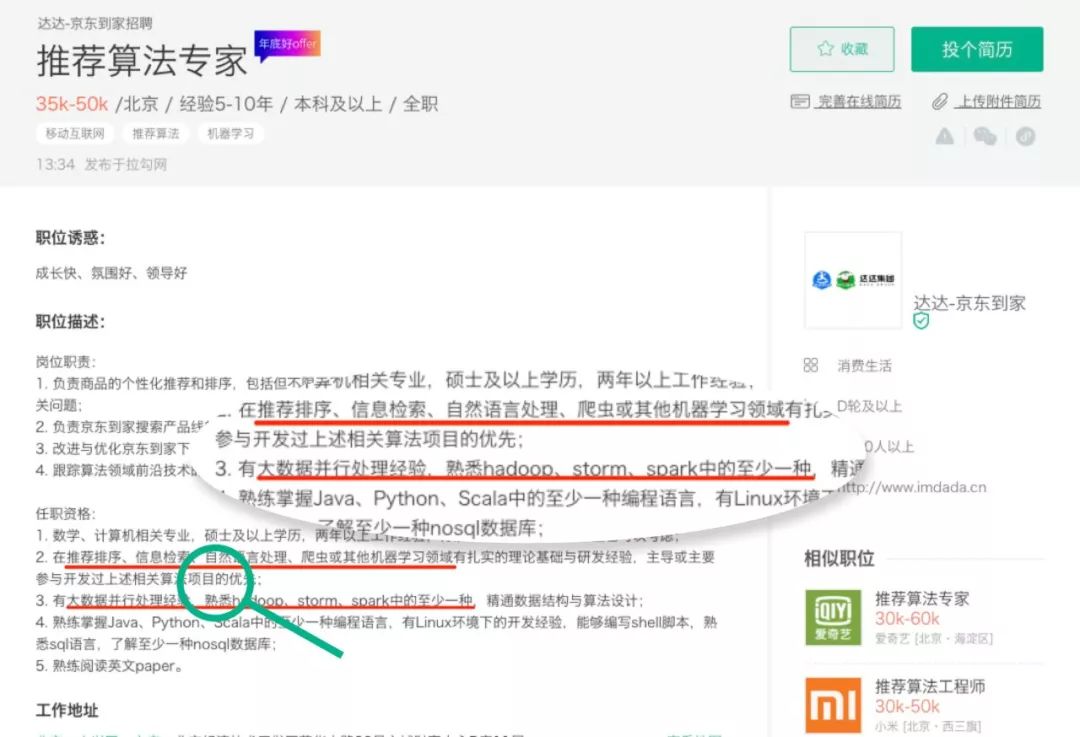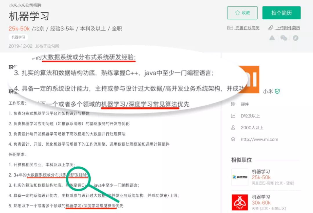 公司在招聘时,除了要求掌握“机器学习、深度学习算法”,也要求具有“分布式系统架构和海量数据处理”方面的能力。