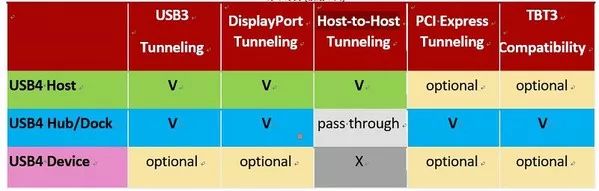 对USB4 Host 与USB4 Device 来说,可以只支援20Gbps。(40Gbps 可列为额外支援,非必要支援速度)。