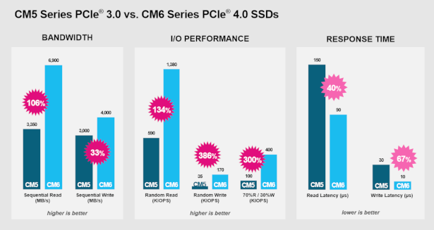 PCIe 4.0在2019年拉开序幕之后,在慧荣、群联、美满电子等主控厂商的支持以及原厂的推动下,PCIe 4.0产品陆续亮相,如,三星的PM1733,铠侠的CM6和CD6,希捷的FireCuda 520,威刚的XPG系列新品SSD等。