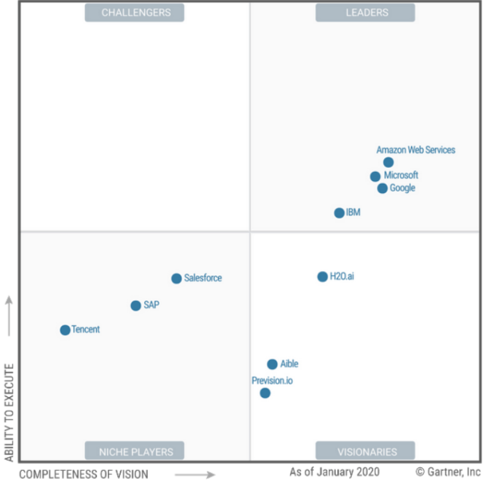 根据 Gartner 云 AI 开发服务魔力象限显示: