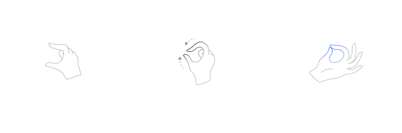 Oculus认为,拇指和食指并拢的手势最适合用于选择,尤其是指腹触碰的触觉可替代手势所缺乏的体感反馈。同时,两个手指捏到一起的动作足够简单,方便记忆,而且由于并不是一个常用的手势,因此不会在无意间触发。