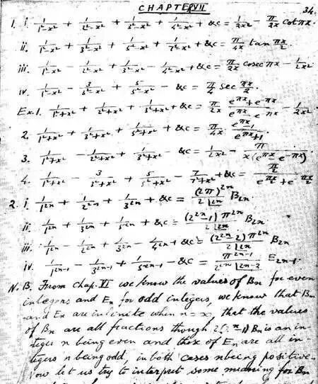 或许对于拉马努金来说,操纵这些数字就如同喝水吃饭一般自然,然而对于不具有和他一样能力的普通人,对着他写出来的神一般的公式,也只能发出:“这都是些什么鬼”的感叹。