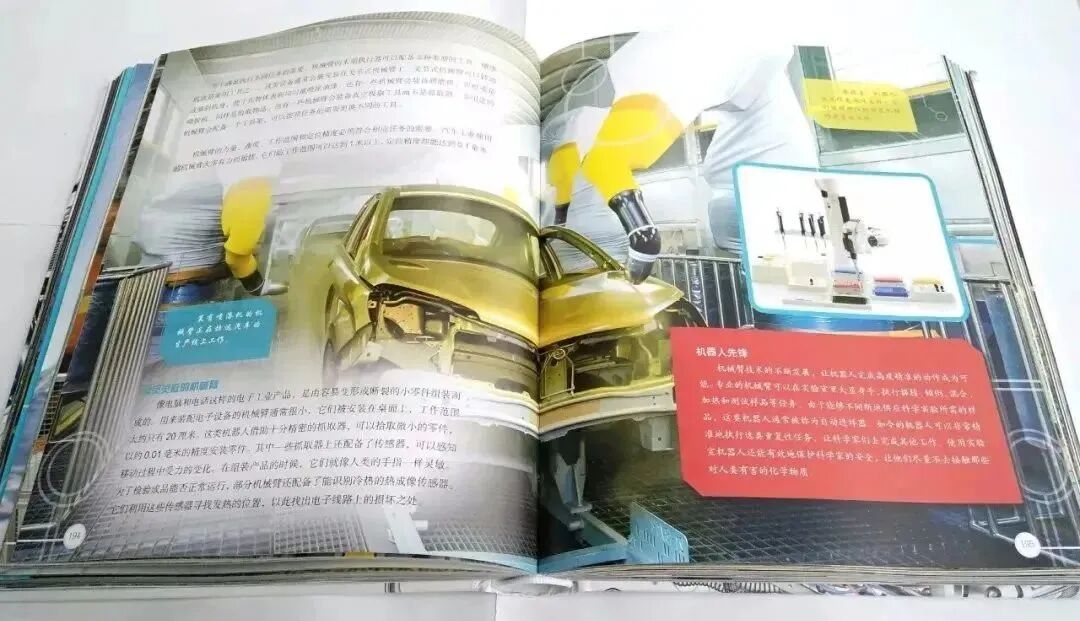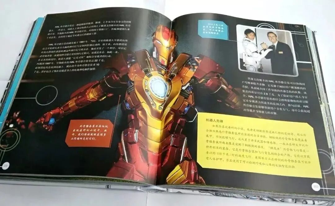 这本书是百科类的,书籍印制也采用了百科类书籍的制作水准,精装印制,内容为铜版纸,清晰展现出机器人的各种细节。
