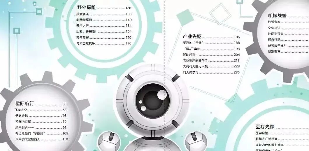 这本书是由世界科普图书殿堂级奖——“安万特青少年科学奖”入围作者克劳迪亚·马丁领衔创作,全书涉及军事、航天、自然、产业、执法、医疗6大领域的250余种机器人。