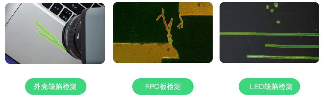 云平台针对3C电子缺陷检测搭建了专属底层卷积神经网络架构,可以对微米(μm)级的缺陷进行检测,划痕宽度只需大于一个像素即可,不会受到颜色、背景等因素干扰,检测速度可达到毫秒级别,大幅提高了生产线的效率。