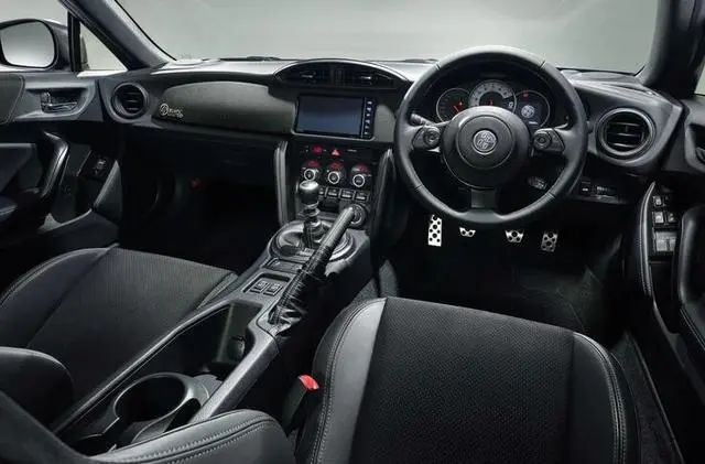 至于在车内方面《Toyota 86 GT Black Limited》除了采用由黑色系皮革、Alcantara材质所共同铺陈的运动化座椅,包括中控台、仪表板、门饰板等处也都以仿麂皮Granlux材质包覆,搭配亮黑色钢琴烤漆中控台、电动窗开关饰板营造与外观相互呼应的运动气息,而在副驾驶座前方更巧妙以86 Black Limited字样彰显限量特别仕样车的独特身份。