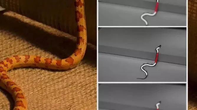 经过研究,他们发现可以蛇在运动时理解为其将身体分成三部分:前后身体像波浪一样在水平台阶上来回摆动,而中体部分则保持僵硬,同时就这样固定,以架起大台阶,尾巴蠕动的部分则提供了稳定性,可以防止蛇翻倒。