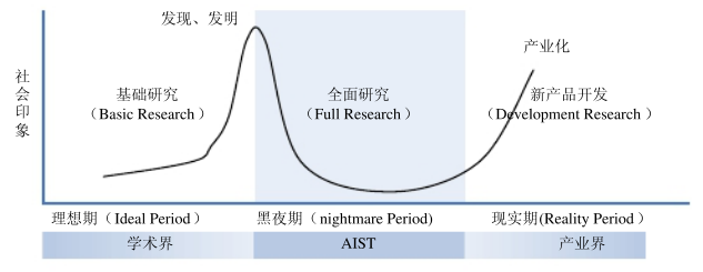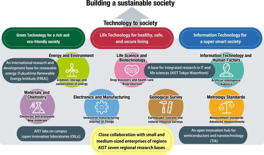 日本产业技术综合研究所(AIST)成立于2001年,是日本政府为整合分散的科研资源,以产业化对抗泡沫经济、引导日本经济脱虚向实而设立。AIST定位于弥合创新技术实验室阶段和商品量产阶段之间的鸿沟,特别注重共性技术的开发及其成果转化。目前拥有职员2338人,是日本最大的公共研究机构。AIST与国家战略联动,致力于大幅提升日本科技水平,强化日本产业的国际竞争力,促进世界最高水平的研发成果的创造、普及和应用。