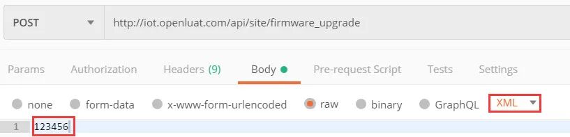 此种格式的body参数,需要对http.request的head和body参数进行填充,head参数需要添加["Content-Type"]="text/xml",body参数直接填充123456。