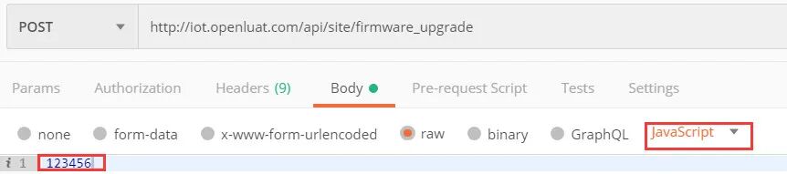 此种格式的body参数,需要对http.request的head和body参数进行填充,head参数需要添加["Content-Type"]="application/javascript",body参数直接填充123456。