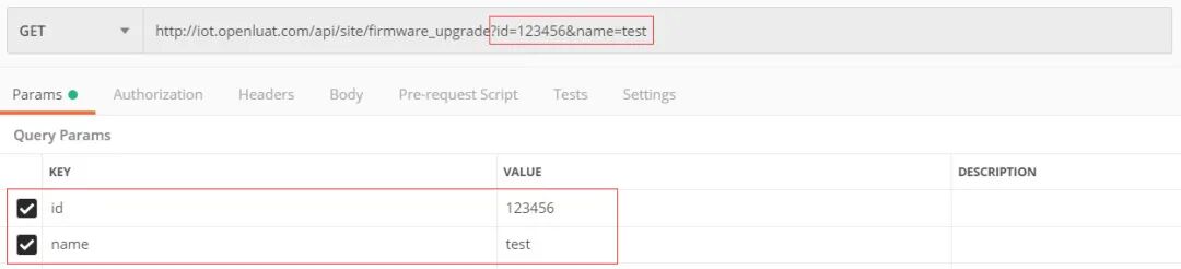 "http://iot.openluat.com/api/site/firmware_upgrade?id=123456&name=test",