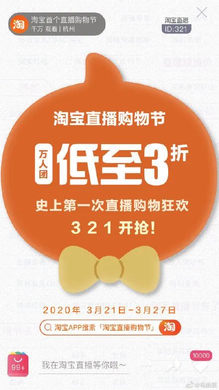 同时,淘宝直播将在 3 月 21 日开启首个「直播购物节」,1 万个线下门店将集体开播。借助「直播万人团」等创新方式,消费者将在直播间里享受到低至三折的福利。数字显示,过去一个月,超过 50% 的天猫商家在直播卖货,线下门店直播更是迎来爆发增长,启动门店直播的商家多了 5 倍,做直播的导购多了 10 倍,并以每周翻倍的速度持续壮大。(来源:亿邦动力)