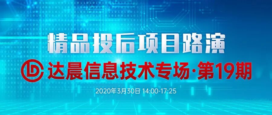 14:05 – 17:25 8家企业依次进行线上路演,每家企业路演完由达晨投资经理线上讲述投资理由,并进行线上问答(路演20分钟+投资理由推介及问答5分钟)