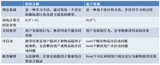 总结一下基于领域的协同过滤和基于矩阵分解的协同过滤的异同点: