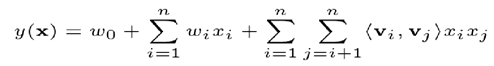 为了将特征交叉考虑进去,FM模型被广泛使用,模型如下: