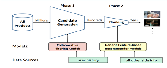 因此现代的推荐系统应运而生。现在推荐系统一般分为以下几个阶段,如下图所示: