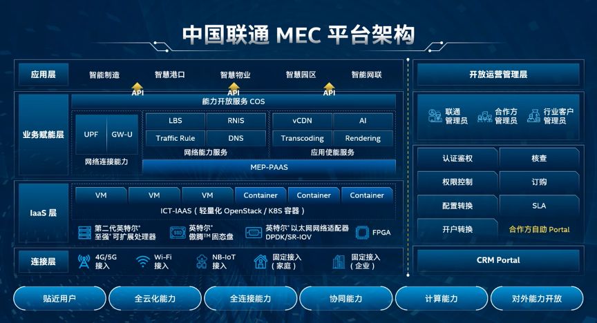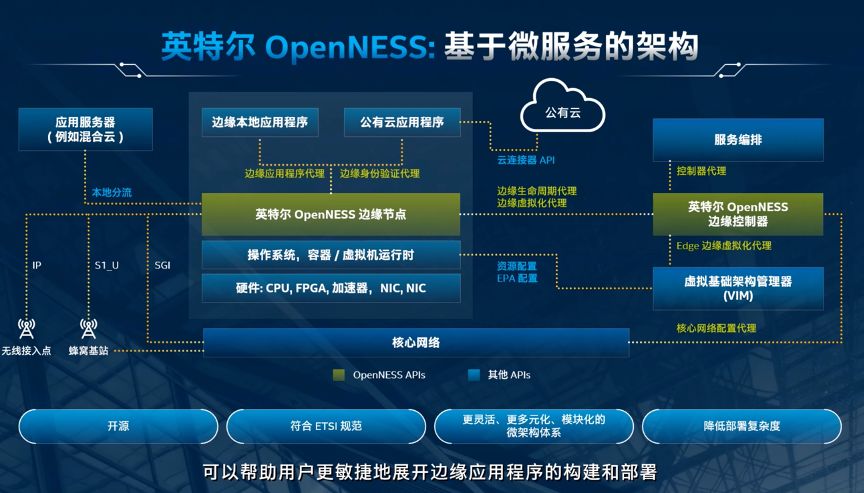 为了在多云和跨平台环境中具备更高效的编排能力,降低平台和网络基础设施的复杂度,并拥有多元化的技术服务能力,在软件平台层面,联通自研的边缘平台参考了英特尔开源软件套件OpenNESS,基于微服务架构,集成了新的硬件增强、开源技术以及丰富的工具包,可以帮助用户更敏捷的开发边缘应用。