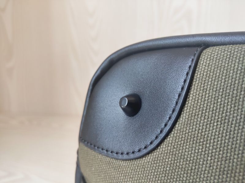 在四角的皮革上,还专门加上了四个平头金属铆钉,这是为了可以将包直立放置,同时也保证在一些雨天等天气情况下不会使包底受到污染或者浸湿等等。