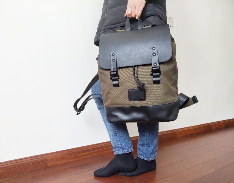 一张“全身照“先镇楼,CASTON LUGA 这个包的军绿配色以及皮革和尼龙布的拼接设计让我看着很是喜欢。