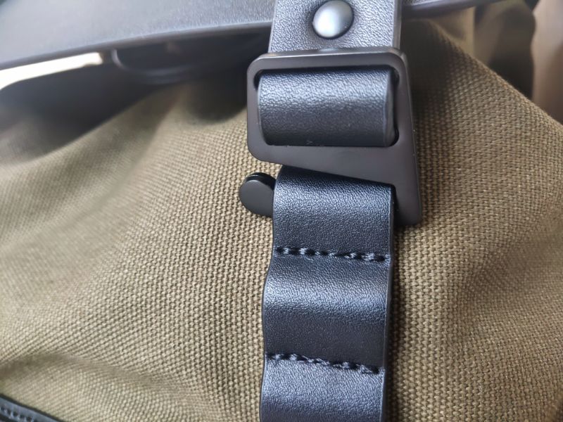 说到使用的问题,那么包的背带也是很重要的,这款 CASTON LUGA 包采用了尼龙的背带,但是它的长短调节方式比较小众,利用的是手表表带式的插孔调节法,每一个孔位当中专门还使用了金属进行固定,这样的确是兼容美观性和实用性,楼主相当喜欢这个设计,哈哈哈哈,不会这也是直男的表现吧。