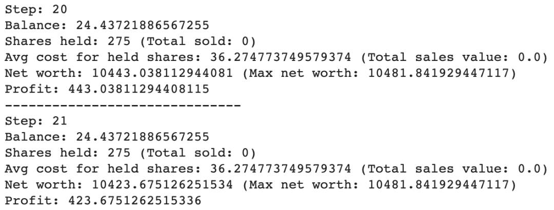 从以上代码可以看到,作者首先使用 pandas 读取股票证券交易数据,之后将其输入 RL 环境中。这里使用的股票交易的 Gym 环境参考了 Stock-Trading-Environment 这一开源实现,我们仅需将获取到的数据输入该环境中,即能得到可直接用于 RL 进行训练的标准 Gym 环境 API。