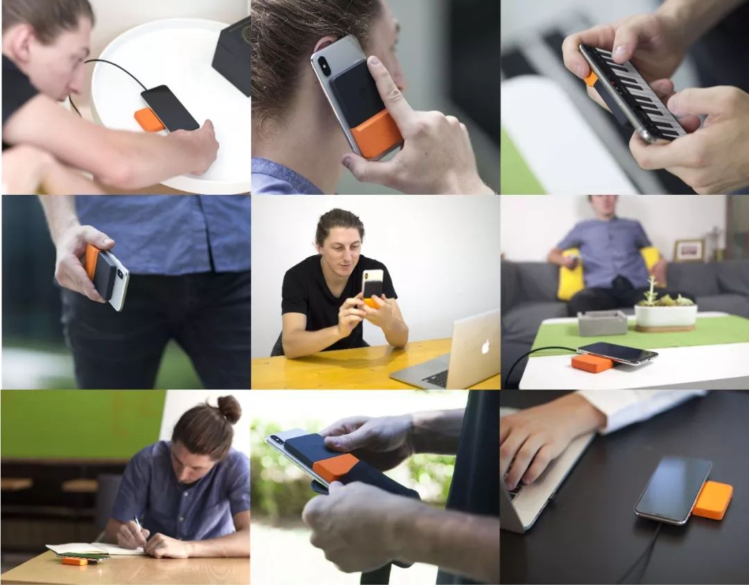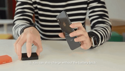 使用时也是非常简单与多样化,将无线充电模块与任意电池模块组合起来,吸附在手机背面即可为设备充电。。。(手机本身需支持无线充电功能)