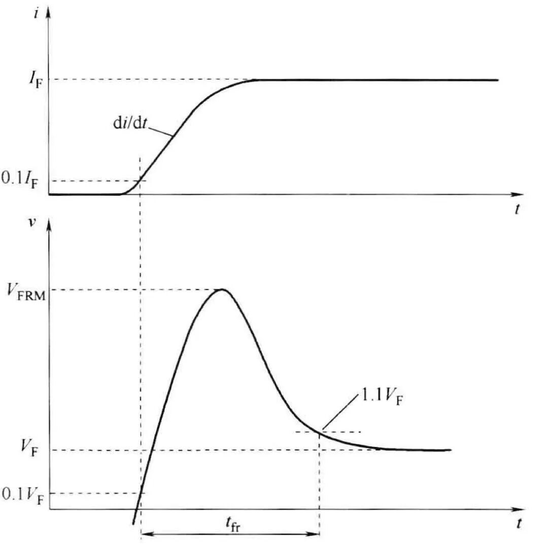 ②快恢复二极管:用于开关器件的续流二极管(比如IGBT旁边并联的那个),或者是在高频变压器后用作输出的整流器。通常,它们能够达到20kHz的开关频率,并且能够在50~100kHz或者更高的开关电源中工作。在Si基的快恢复二极管中,中间低掺杂层(n-层)中的载流子寿命必须减小到规定的低值。