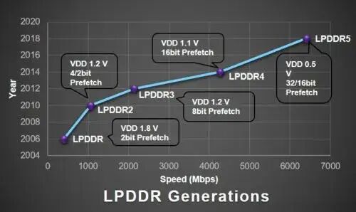 LPDDR和DDR之间的关系非常密切,简单来说,LPDDR就是在DDR的基础上面演化而来的,LPDDR2实在DDR2的基础上演化而来的,LPDDR3则实在DDR3的基础上面演化而来的,以此类推。但是从第四代开始,两者之间有了差别或者说走上了不同的发展,主要因为DDR内存主要是通过提高核心频率从而提升性能,而LPDDR则是通过提高Prefetch预读取位数而提高使用体验。同时在商用方面,LPDDR4首次先于DDR4登陆消费者市场。
