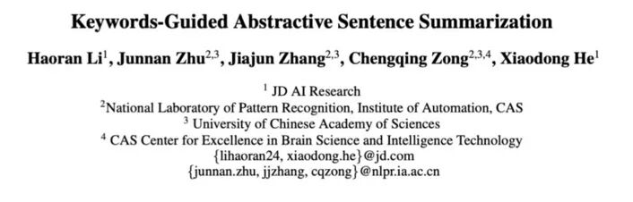 本文致力于生成式句子摘要的任务,即如何将一个长句子转换成一个简短的摘要。我们提出的模型可以利用关键词作为指导,生成更加优质的摘要,获得了比对比模型更好的效果。