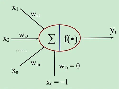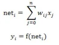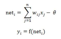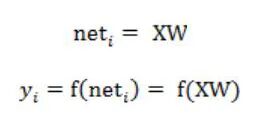 人工神经元是神经网络的基本元素,其原理可以用下图表示:图中 x1 ~ xn 是从其他神经元传来的输入信号,wij表示从神经元 j 到神经元 i 的连接权值,θ 表示一个阈值 ( threshold ),或称为偏置( bias )。则神经元 i 的输出与输入的关系表示为:图中 yi 表示神经元i的输出,函数f称为激活函数 ( Activation Function )或转移函数 ( Transfer Function ) ,net 称为净激活(net activation)。若将阈值看成是神经元i的一个输入 x0 的权重 wi0,则上面的式子可以简化为:若用 X 表示输入向量,用 W 表示权重向量,即:若神经元的净激活net为正,称该神经元处于激活状态或兴奋状态(fire),若净激活net为负,则称神经元处于抑制状态。图1中的这种“阈值加权和”的神经元模型称为M-P模型 ( McCulloch-Pitts Model ),也称为神经网络的一个处理单元( PE, Processing Element )。2. 常用激活函数