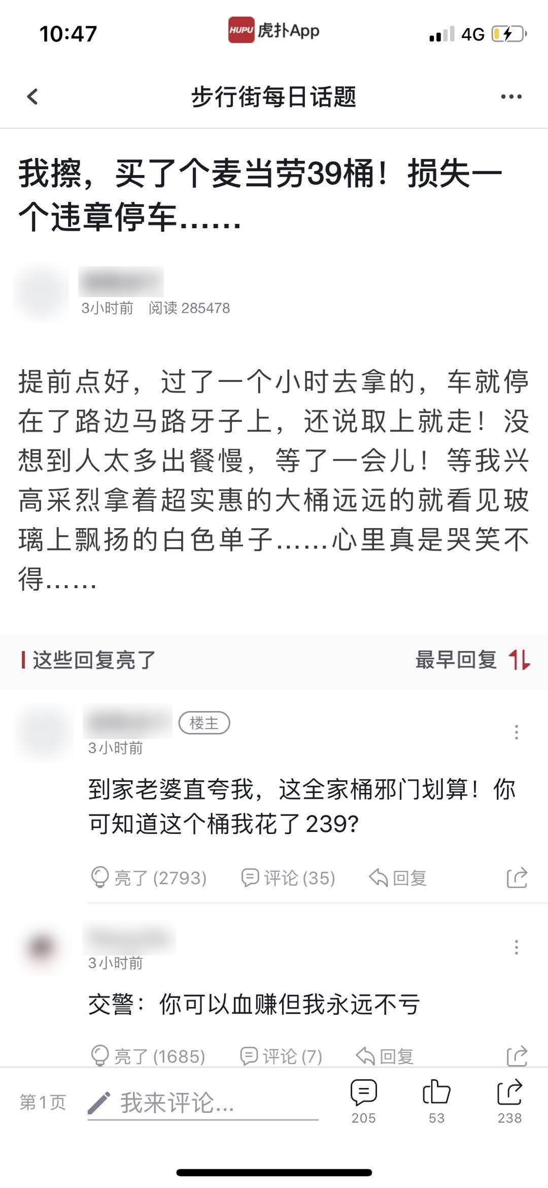 又有多少人为了吃个麦当劳桶被开了罚单,得不偿失。