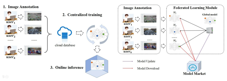 与其他用户的更新即时整合,作为对共享模型的改进。