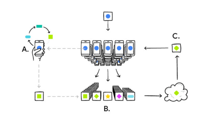 根据用户使用情况,每台手机在本地对模型进行个性化改进;