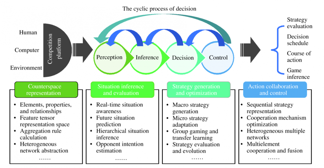 和感知智能有所不同,人机对抗通常关注更为复杂的时序决策等认知智能,对其过程建模是一个高度复杂问题,因此认知决策建模是整个人机对抗中的核心关键环节。