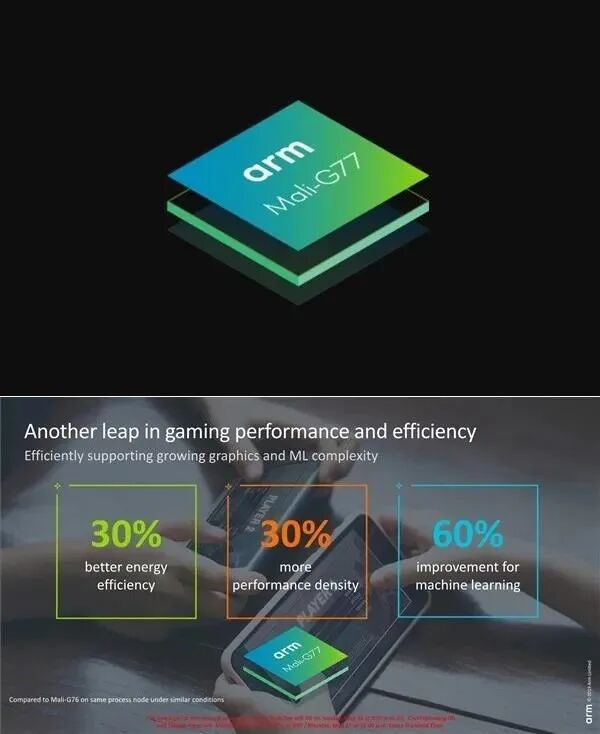 有机构测试表明,Mali-G77性能接近苹果A12芯片的GPU,超过高通现有的GPU内核Adreno 640,是一款不打折扣的旗舰级移动GPU内核。
