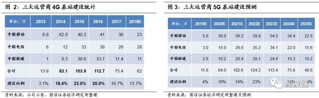 量:1)基站数增多;2)1个基站配备3面天线,与4G时期一致。