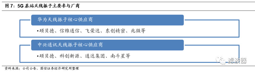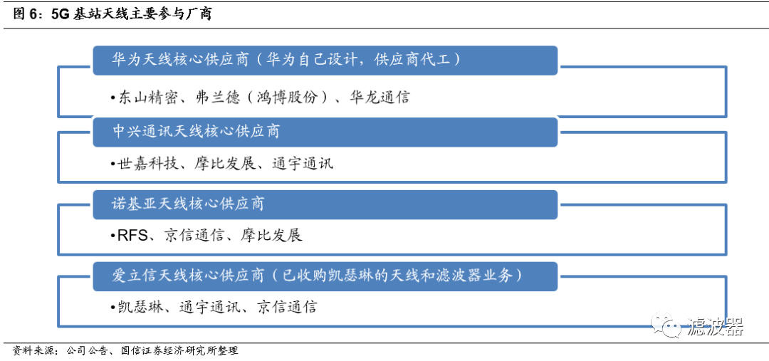 5G基站天线核心供应商如下表所示。