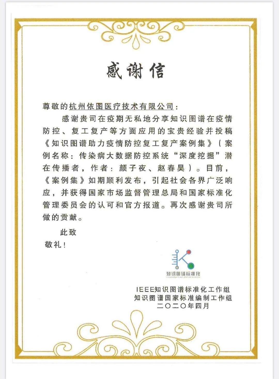 近日,由工信部中国电子技术标准化研究院牵头编制的《知识图谱助力疫情防控和复工复产案例集》(以下简称“《案例集》”)正式发布。依图自主研发的传染病大数据防控系统应用入选《案例集》,并被国家市场监督管理总局和国家标准化管理委员会作为知识图谱领域的好经验、好做法进行推广。