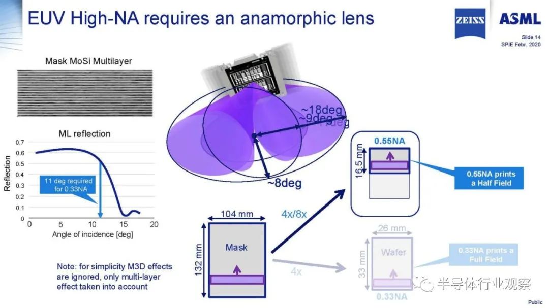 才能印刷出最小的特征。高NA系统的目标是使0.33NA系统的覆盖率和生产率匹配,同时使单程