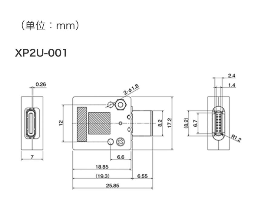 装备USB Type-C 3.1标准接口 (JAE制造 型号:DX07B024JJ3LR1600),可以安装至设备等的安装孔(Ø1.8)。