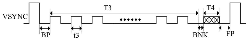 在图1中的步骤103,TDDI芯片被调整为轻负载模式,控制驱动模块将显示面板中每行像素的显示时长调整为第二显示时长t3。这种工作模式下,每一帧图像分配的显示时长为T3,触控时长为T4。由于第二显示时长t3小于第一显示时长t1,使得屏幕中的每行像素的充放电更充分,同时使得每一帧图像的显示时长T3大于重负载模式下显示时长T1,每一帧图像的触控时长T4小于重负载模式下的触控时长T2,因此使得触控时间内不会出现空闲,提高显示效果。