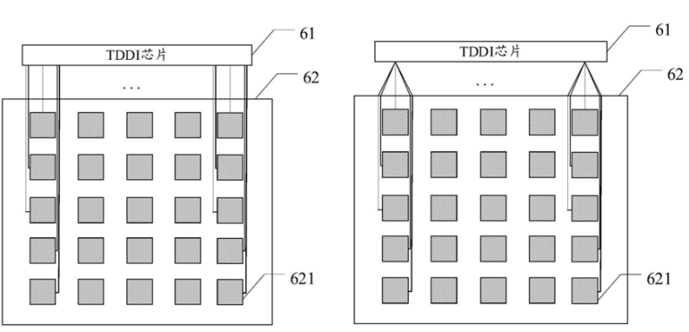 图4展示了专利中自电容模式的触控面板,用户未触控时,触控电极621的信号对应的电压值或电流值的变化量为0,在用户进行触控操作时,用户与触控电极621之间形成耦合电容,从而使得触控电极621的信号对应的电压值或电流值的变化量不为0,作为TDDI芯片的触控信号检测输入。