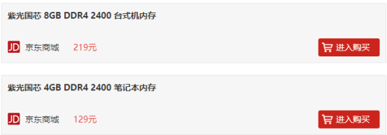 中关村在线4月24日消息,紫光内存已上架京东,无需预约、无需抢购,而且包含台式机内存和笔记本内存,价格也比较正常。