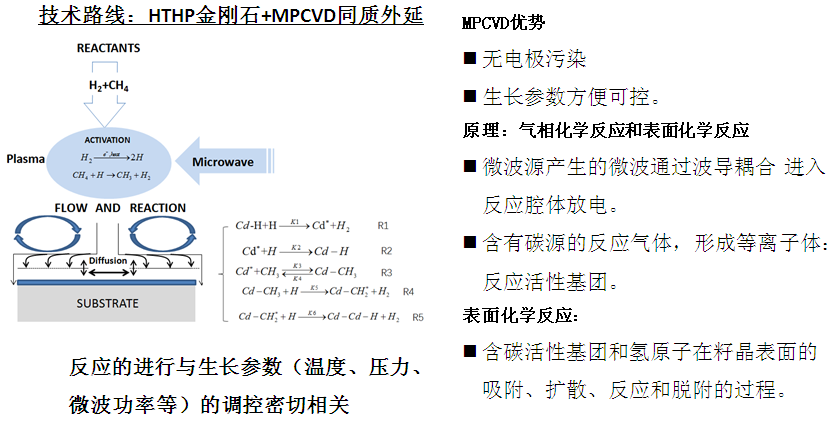 1998年美国卡内基地质物理实验室开始CVD单晶金刚石合成;2002年元素六公司开始用CVD法生长单晶金刚石;