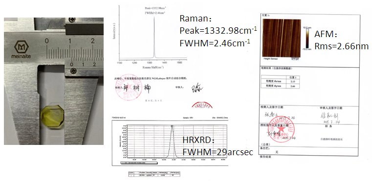 目前济南金刚石、中南钻石可以生产10CT以上金刚石单晶体,切片尺寸可以达到10*10mm,为半导体基础应用研究提供基础条件。
