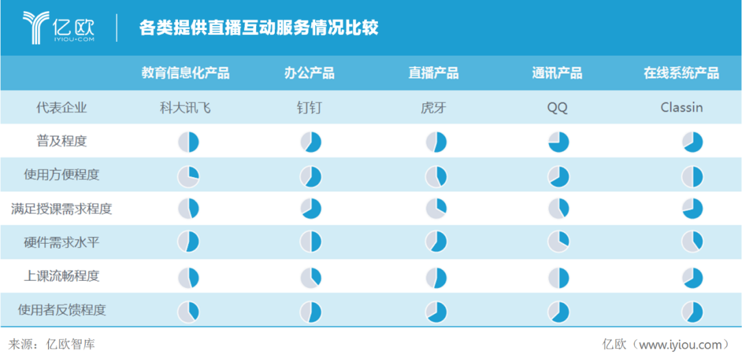 最直观的普及是从教育企业到各类学校积极使用线上工具完成授课。各类可以提供直播互动服务的企业纷纷借机进入教育行业,寻求未来业务的增长点。教育行业的复杂性在应对疫情的过程中得到了更充分的体现,故亿欧智库认为,随着疫情结束,应用现状多不可持续,单纯工具进入核心环节的步伐当下被高估。