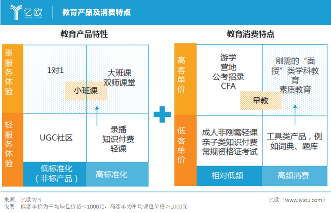 基于上述内容,亿欧智库认为,应该从全品类线上化的非理性热潮中抽离出来,消费者对于不具备线上化特质的品类不会持续买单,从中长期的角度看,英语、编程、K12、资格证类考试等标准化程度高和陪练等结果导向较弱的在线教育品类发展更值得期待。另外结合授课组织模式来看,当下各品类教育机构均趋向于为获取更高客单价而加重服务属性。