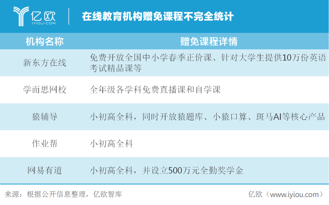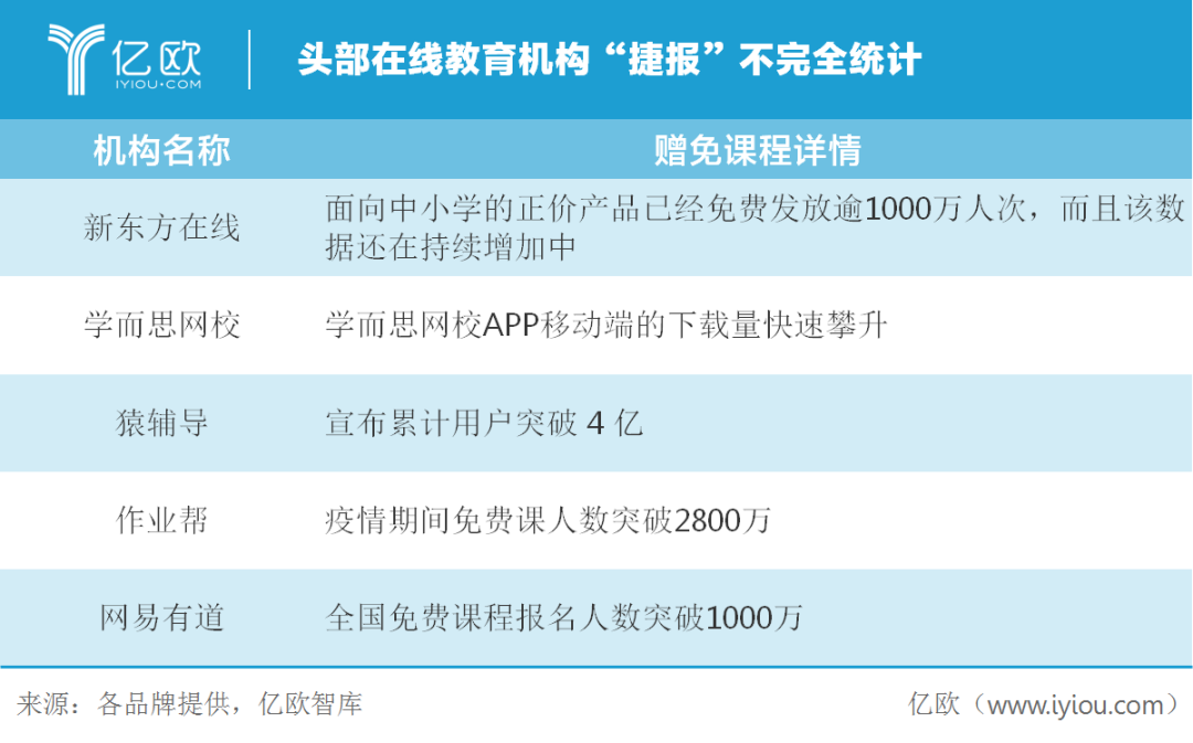 在线教育在疫情期间确实做了堪称“疯狂”的投放和赠免课程,巨头如新东方在线、学而思网校、猿辅导、作业帮、跟谁学、网易有道全部加入。