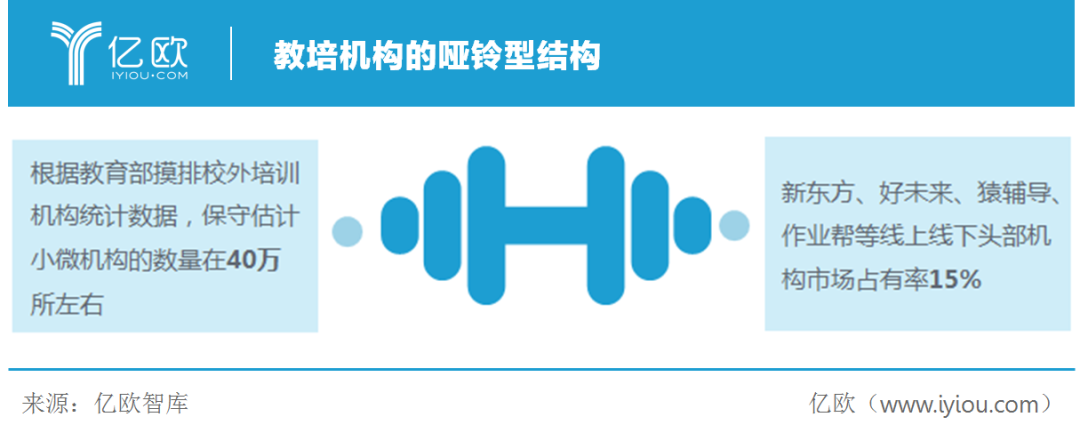 线上化是所有机构的必经之路吗?未必!正确评价自己,不跟风才能理性选择未来发展路径。亿欧智库认为,无论是否受疫情影响,教培行业的格局都会向哑铃型结构发展。所产生的结果是模式求变,往往是中型机构“不得不”的路径。
