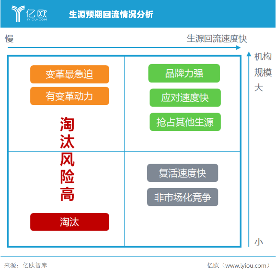微小机构负担小,灵活性高,回血速度相对较快。头部机构受“二八”效应明显利好,利用品牌优势和技术优势对生源的吸纳作用明显。处在中间的地方性机构面临的压力相对而言最大,受制于资金实力和技术壁垒,短时间内很难突围。不过其地域优势也指向了另一条道路,即被头部互联网教育公司并购,从目前亿欧智库获取的消息来看:字节跳动、作业帮、网易有道都在接触和观望线下机构。